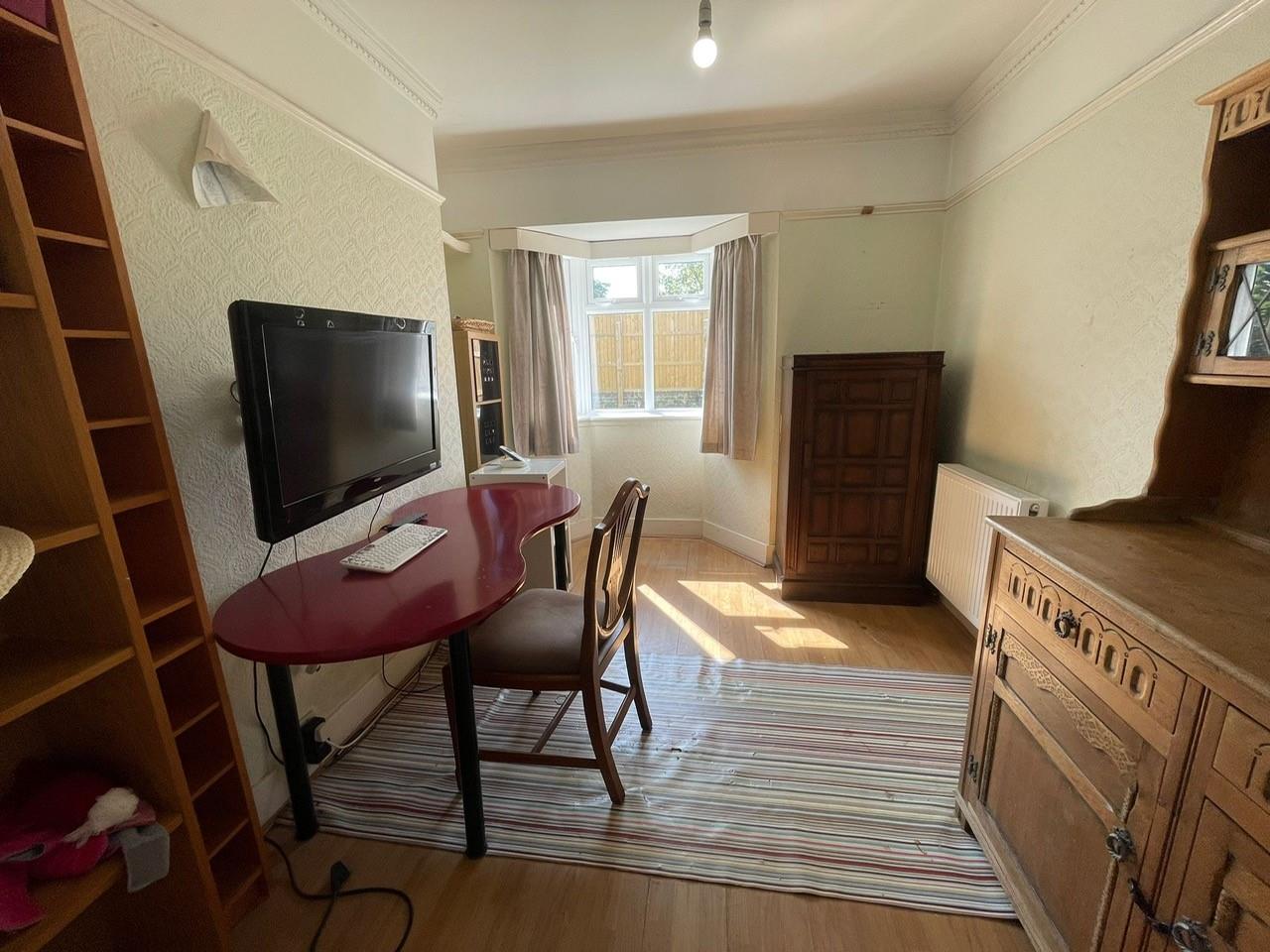Ornamental arched opening leading to Study, having uPVC double glazed bay window overlooking front garden, radiator, picture rail, ornamental coving.
