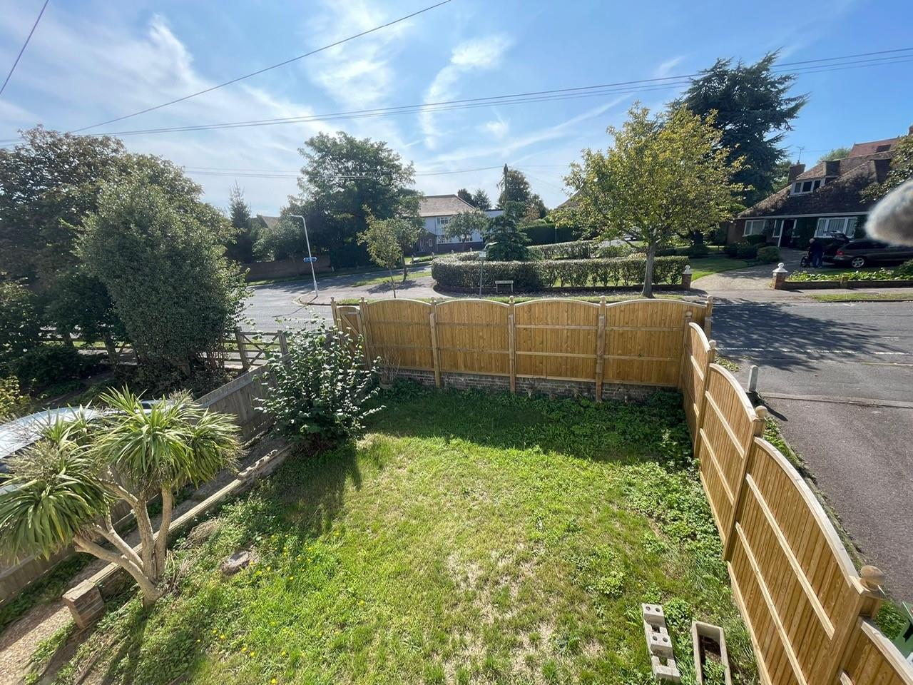 Front garden: New timber panelling to 2 sides, small ornamental brick way, paving adjacent to house, laid to lawn with shrubs. Driveway with parking for several cars, leading to attached garage. Wooden side gate leading to rear garden. Timber gate leading to pavement.