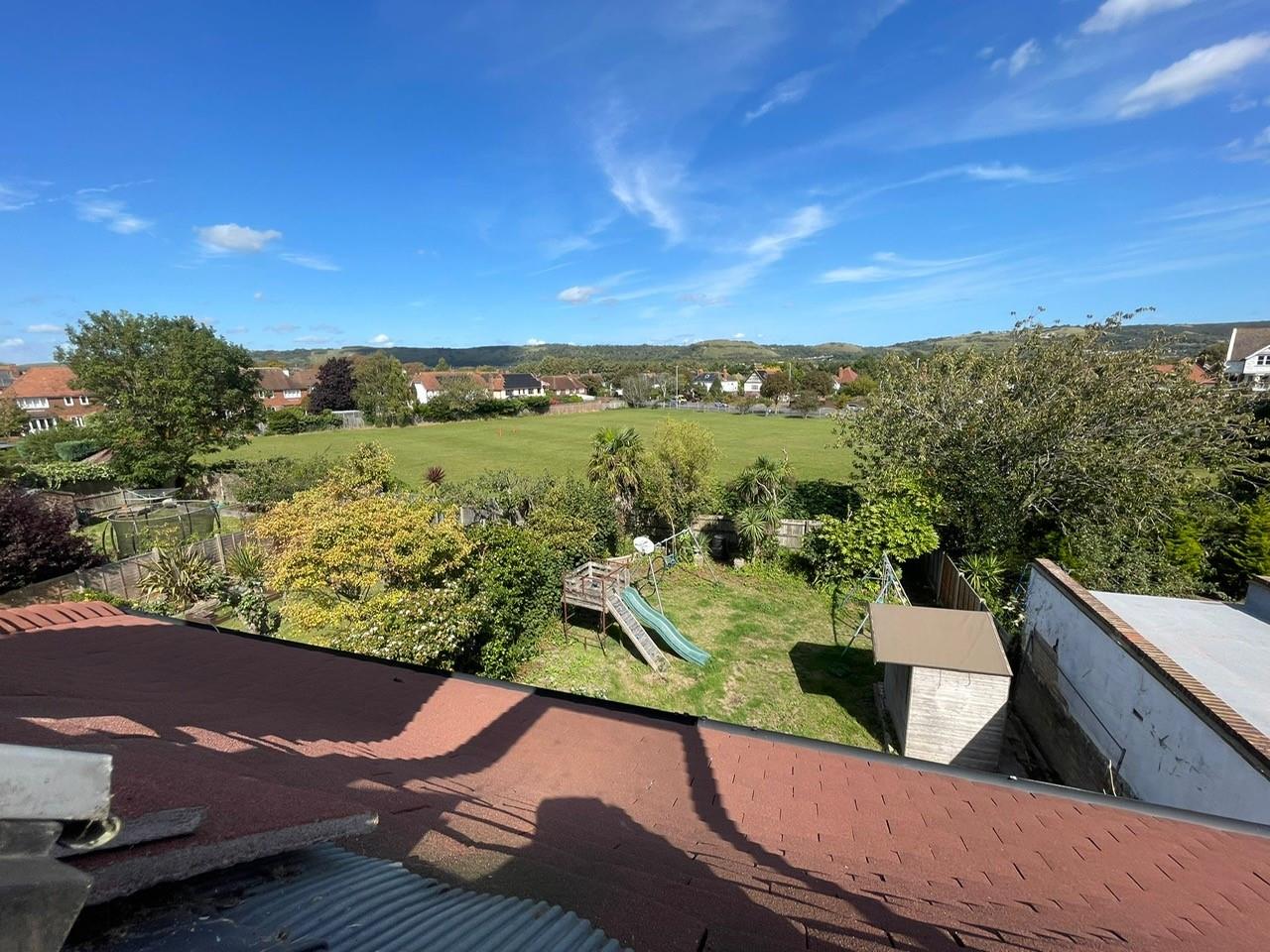 Having uPVC double glazed replacement window overlooking rear garden, playing fields, and the North Downs in the distance. Double rad, built in shelved cupboard and small built in cupboard, picture rail and coving (part of ceiling sloping).