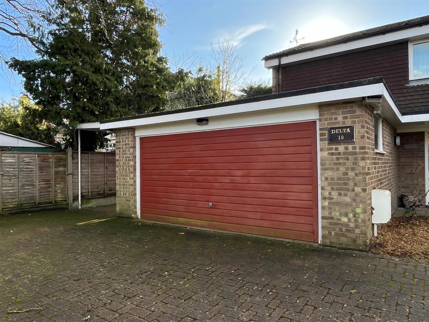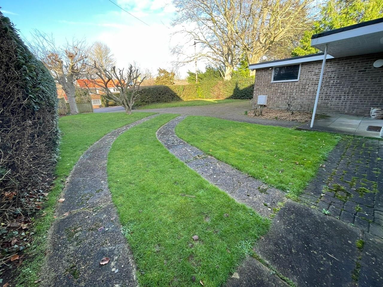 Outside the front garden is part laid to lawn with hedging to the front and side boundaries, and with various trees and shrubs. A brick block driveway with parking for several cars leads to a double garage with electric up and over door. Two gates at either side of the house lead to a delightful south facing rear garden providing a tranquil outdoor space to relax and enjoy the sunshine. Additionally, the house offers distant views of the picturesque North Downs, adding to the overall appeal of the home.